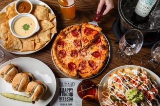 Unwind with Happy Hour specials, including Chips & Dip for $10, Personal Pies (margherita, veggie, or pepperoni) for $10, Na’cho Nachos for $10, Burger Bites for $14,...